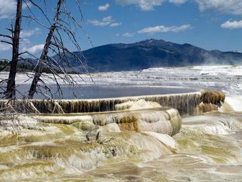 Keywords: mammoth hot springs travertine yellowstone national park calcium carbonate landscape colorful scenic steam geothermal limestone wyoming usa