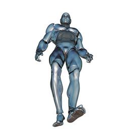 Keywords: man above robot cyborg android robotics future artificial intelligence blue silver isolated sci-fi science fiction
