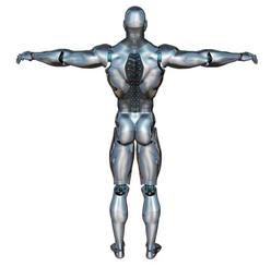 Keywords: man back robot cyborg android robotics future artificial intelligence blue silver isolated sci-fi science fiction