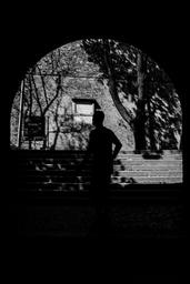 Keywords: man black and white mystery black white male people adult tunnel light