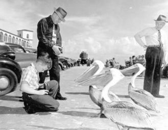 | Keywords: florida pelicans camera photographers birds st. petersburg stpetersburg 1948 cameras peter c. magheese petercmagheese david small davidsmall e. tawas, michigan etawasmichigan pelecanidae pinellas county pinellascounty blackandwhite state library and archives of florida statelibraryandarchivesofflorida million dollar pier milliondollarpier monochrome black and white Local call number: c009072 Title: [Man and boy photographing pelicans: Saint Petersburg, Florida] Date: Photographed on January 27, 1948. Physical descrip: 1 photoprint b&w 4 x 5 in. Series Title: (Commerce Collection.) General note: The man standing is Peter C. Magheese of Grand Rapids, Michigan, and the young boy (age 10) is David Small from E. Tawas, Michigan. Repository: State Library and Archives of Florida, 500 S. Bronough St., Tallahassee, FL 32399-0250 USA. Contact: 850-245-6700. Archives@dos.state.fl.us Persistent URL: www.floridamemory.com/items/show/68218 Local call number: c009072 Title: [Man and boy photographing pelicans: Saint Petersburg, Florida] Date: Photographed on January 27, 1948. Physical descrip: 1 photoprint b&w 4 x 5 in. Series Title: (Commerce Collection.) General note: The man standing is Peter C. Magheese of Grand Rapids, Michigan, and the young boy (age 10) is David Small from E. Tawas, Michigan. Repository: State Library and Archives of Florida, 500 S. Bronough St., Tallahassee, FL 32399-0250 USA. Contact: 850-245-6700. Archives@dos.state.fl.us Persistent URL: www.floridamemory.com/items/show/68218 |