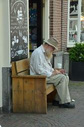 Keywords: man coffee break time bank outdoor rest concentration attention