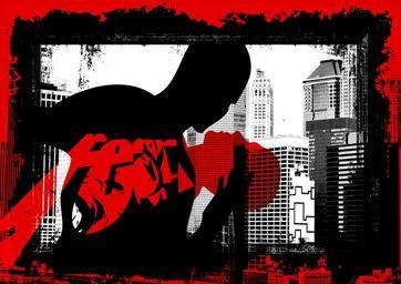 Keywords: man face fear risk grunge skyscraper city scene art waste dirt stains horror scenario pollution sweepings dirty filth