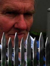 Keywords: man face grim evil neighbor fence garden fence suspicion view field of vision jealousy eifersuechtigkeit distrust neighborhood close envy scene
