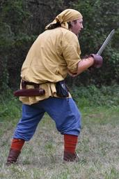 Keywords: man fighting sword outfit clothing people