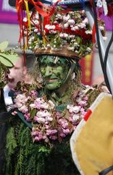 Keywords: man green man hat flowers face male portrait costume makeup