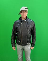 Keywords: man greenbox chroma key leather jacket cap medium human
