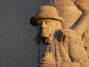 Keywords: man hat faces stone stonemasonry profile men figures facade head heads shadow back light person face portrait piggyback each other one above the other
