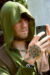 Keywords: man hood hooded camera portrait phone taking picture tattoo