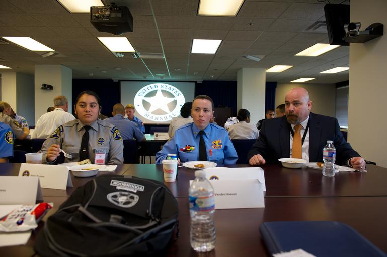 | Keywords: Man in suit talks to several law enforcement explorers.jpg en 2013 Law Enforcement Leadership AcademyThe U S Marshals Service hosted a large group of Law Enforcement Explorers this week as they toured many of the federal law enforcement agencies in the Washington D C metro area Law Enforcement Exploring provides educational training programs for young adults on the purposes mission and objectives of law enforcement The program provides career orientation experiences leadership opportunities and community service activities The primary goals of the program are to help young adults choose a career path within law enforcement and to challenge them to become responsible citizens of their communities and the nation Agencies from federal state and local levels coordinate the Law Enforcement Exploring programs throughout the United States The majority of the community programs are managed by local police departments including Sheriffs Chiefs of Police and State Police In addition many federal agencies offer their support The Bureau of Alcohol Tobacco Firearms and Explosives ATF Drug Enforcement Administration DEA Federal Bureau of Investigation FBI Federal Law Enforcement Training Center FLETC Federal Air Marshal Service US Army Military Police US Customs and Border Protection Service US Marshals Service US Postal Inspection Service and US Secret Service provide national programs scholarships workshops and literature Also Law Enforcement Exploring is supported by the National Sheriffs ™ Association and the International Association of Chiefs of Police Nationally over 33 000 Explorers and 8 425 adult volunteers participate in Law Enforcement Exploring The program highlights include the National Law Enforcement Exploring Leadership Academies ride-alongs career achievement awards National Law Enforcement Exploring Conferences and scholarship opportunities Photos by Shane T McCoy / US Marshals 2013-07-09 11 53 44 U S Marshals Office of Public Affairs Shane T McCoy other versions PD-USGov Law Enforcement Exploring |