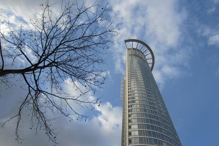 Keywords: man and nature skyscraper building modern building modern high rise building frankfurt architecture chinese center frankfurt chinese high rise frankfurt blue sky white clouds sky clouds