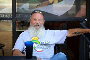 Keywords: man outside relaxing old elderly senior beard american person male adult gray rough tough biker casual masculine