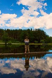 Keywords: man pond water sky mirroring blue nature swimming pond