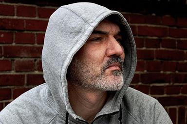 Keywords: man profile portrait person face hood bart head wall