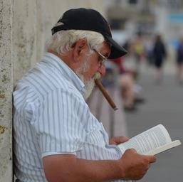 Keywords: man read cigar people book old man beard smoking rest relax body kits elderly pension