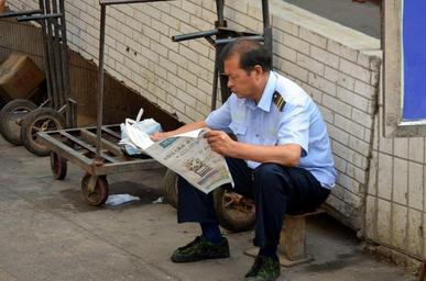 Keywords: man relax break reading news newspaper