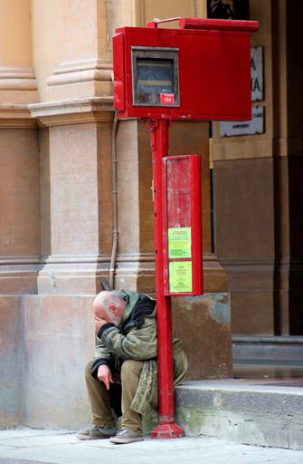 Keywords: man solitude homeless desolation old age color red road sadness despair