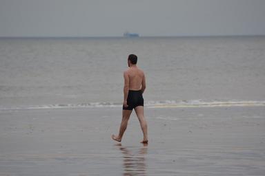 Keywords: man swimming trunks sea swimming steps people determination
