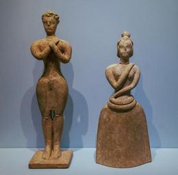 | Keywords: Man woman praying archmus Heraklion.jpg en Pair of clay figurines of worshippers exhibiting typical features of the Figurine art of sanctuaries The woman is wearing a long skirt and is elaborately coiffed and the man adorant is wearing a loincloth with slim waist and overemphasized thighs Piskokephalo Sitia 1650 - 1500 BCE fr Deux figurines orantes en argile typiques de l'art des figurines de sanctuaire La femme porte une longue jupe et est coiffée d'une manière élaborée L'homme adorant porte un pagne sur une taille très fine et des cuisses exagérément larges Piskokephalo Sitia 1650 - 1500 BCE institution Archaeological Museum of Heraklion 2015-02-23 11 50 21 own Jebulon other versions cc-zero Uploaded with UploadWizard Minoan terracottas in AM Heraklion Clay objects Statuettes of men Statuettes of women Statues of praying people 17th-century BC works in Greece Findings from Piskokefalo Quality images by Jebulon QualityImage |