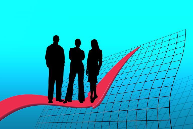 Keywords: man woman silhouette joy arrow profit won victory businessman boom economy capital market financial world development business