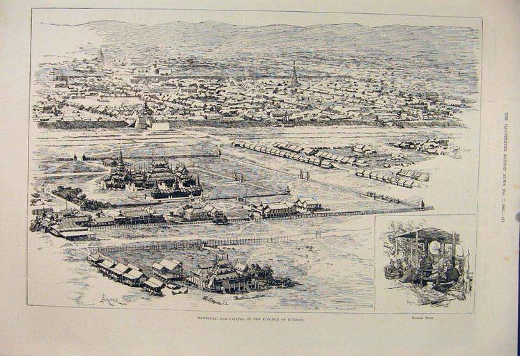 | Keywords: Mandalay1885.jpg en Views from the ILLUSTRATED LONDON NEWS and The Graphic some with later hand coloring all from ebay auctions Loodhianah on the Sutlej 1846 Sikh Soldiers 1846 The British Museum 1851 An Indian Railway Station 1854 shown above Banyan Tree 1856 Travelers overtaken by the inundation of a flash flood 1856 Hindoo thugs and poisoners 1857 Snake charmers in India 1857 Ruins Brahmunabad Sind 1857 Hindoostanee Dhoolie used by Hospitals and in the Field 1857 The Chowk or Square before the Palace of the Rajah Indore Oct 3 1857 with hand coloring Fort of Allahabad 1857 Temple of Juggernaut 1857 The Mutiny in India defenses of Delhi 1857 The recapture of Allahabad 1857 The Red Fort after its recapture January 1858 Dawk Wallahs of Bengal 1858 An Indian Railway Station Defended and The Mhow Fort 1858 Fireworks at Moorshedabad from a Native Drawing 1858 The Hoolie Festival 1858 The Hindoo Money-Changer 1859 The Keranchie-Kidrapore Omnibus 1859 Calisthenic exercises in India 1860 An Elephant Taking Care of Children 1863 Peruvian bark tree plantation in the Neilgherry Hills 1864 Milk-women in the Camp 1864 Performing Goat 1864 Shoeing a Bullock in India 1864 Effects of the Cyclone at Calcutta 1864 An Indian Harlequin Playing the Tiger 1864 The Social Science Congress at Sheffield Sir Manockjee Cursetjee delivering his essay on education in India 1865 Tumblers and Jugglers 1872 Eclipse expedition to India 1872 Scene of the gunpowder explosion at Agra Fort 1872 Going to the Races an Upcountry Scene in India from The Graphic 1872 Sir Jamsetjee Jeejeebhoy's School of Art at Bombay from The Graphic 1872 An Indian Portrait Painter from the Illustrated Times 1872 Indian Modes of Irrigation image 1 c 1874 Indian Modes of Irrigation image 2 c 1874 An Elephant Auction in India 1875 A Serpent Charmer 1875 A Rhinoceros Fight at Baroda 1875 The Prince of Wales's voyage to India taking ice on board HMS Serapis 1875 A Rajah goes in state to a reception by the Prince of Wales at Bombay 1875 Operatic company en route to India 1875 The Feast of Lanterns at Bombay 1875 Loading bullock carts 1875 In the Synagogue of the White Jews Cochin Feb 5 1876 with hand coloring Bruising Rice for Sweetmeats Feb 5 1876 with hand coloring A Fakeer 1876 A Strolling Minstrel at Madras Playing the Tingadee 1876 A Hindoo Mendicant Pilgrim 1876 On Board Steamer Indus taking soundings 1876 On the Way to India Southhampton 1876 The Royal Visit to India Arrival of the Prince of Wales at Agra 1876 The Perahara Festival at Kandy Ceylon before the Prince of Wales 1876 The Prince of Wales Visiting the Monkey Temple Benares 1876 Royal Visit Sans Souci Bombay 1876 Bombay The Banquet to Two Thousand Sailors of the Fleet 1876 Entry of the Prince of Wales into a City of India 1876 Triumphal Arch on the Alexandra Railway Bridge at Wuzeerabad 1876 A Tiger Hunting Party 1876 Padding a Tiger 1876 Crossing a Nullah in the Terai 1876 The Prince of Wales on the Road to the Temple of Parbuttee near Poonah 1876 The Modern Juggernauth 1877 Wood Carver Simla 1877 The Jowaki Campaign North-West Frontier of India 1877 Paris Exhibition Pavilion of the Prince of Wales's Indian Collection 1878 The War with the Jowakis North-Western India 1878 An Indian Night Watchman 1878 An Unwelcome Visitor-- A Frequent Incident of Anglo-Indian Life from The Graphic 1879 Sketches in Southern India shooting alligators on the way home from a picnic from The Graphic 1879 Ten Days' Sporting Trip in the Jungle of India from The Graphic 1880 Shooting the Ibex 1880 Bringing the Head of the Ibex Home 1880 A Dust Storm in Camp 1880 Deportation of Sidars into India Halt for Prayer Sunset 1880 Preparing for a Race Meeting 1880 A Hindoo Shrine at Allahabad 1881 Indigo Cultivation Tirhut Bengal from The Graphic 1881 Twenty-four Hours in the Life of a Subaltern from The Graphic 1882 Field Firing at Peshawur from The Graphic 1882 Small Sport in India from The Graphic 1882 Quail Snaring with Trained Cattle 1883 To India on P O Steamer Cathay 1883 Ilbert Dynamite Conspiracy Trial 1883 Tea Cultivation in India -- a Tea Garden on the Borders of Nepaul from The Graphic 1883 Pig Sticking in India from The Graphic 1883 Christmas in Southern India from The Graphic 1884 Lime Cutting in India 1885 India Regimental Gymkhana Races 1885 Fancy Dress Ball at Dharmshala Punjab 1885 Scindia's Fortress of Gwalior Central India 1885 India Days Ravine Deer Stalking from The Graphic 1885 Mandalay Capital of the Kingdom of Burmah 1885 An Elephant Battery in Action near Mingyan Burma from The Graphic 1886 The Fighting in Upper Burma from The Graphic 1886 The Rebellion in Burma from The Graphic 1886 A Pearl Fishery in Ceylon from The Graphic 1887 Indigo Manufacture in India from The Graphic 1887 A Ceylon Surf Boat from The Graphic 1887 The Burma Campaign from The Graphic 1887 Transport of Trees in the Forests of the Himalayas 1888 Young Civilian's First Year in India 1888 Hyena-Spearing in India 1889 Tiger-Shooting in India 1889 Bear-shooting Kashmir 1889 Hunting with cheetas at Dhar 1889 A Day's Hawking at Dera Ghazi Khan Punjaub from The Graphic 1889 The Great Hall at 'The Strangers' Home' West India Dock Road from The Graphic 1889 The Yule Log in India--Bringing in the Ice from The Graphic 1889 Native Cavalry Tent-Pegging in Sections 1890 Mompunga a Lushai chief and Mr Murray Political Agent taking the oath of friendship 1890 The Lushai Expedition 1890 Highway Robber -- Indian Monkey 1891 The Morning Ride 1891 Ratnagiri Bombay 1891 Praying for Rain in Northern India A Hindoo Fakir Invoking the Gods 1891 The Sleepy Punkah-walla from The Graphic 1891 Unwelcome Visitors Crows at a Tennis Party in India from The Graphic 1891 The Locust Plague in Northern India from The Graphic 1891 The fighting near Gilgit on the Northwestern Frontier from The Graphic 1891 The Cavalry Manoeuvres of Attock Native Cavalry Stopping a Scout from The Graphic 1891 Pig Sticking on the Churs of the Brahmapootra-- Surpri