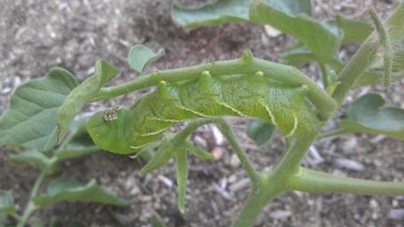 Keywords: Manduca sexta larva.jpg en Taken in Yucca Valley CA Manduca sexta larva on tomato plant 2012-07-19 own E Aaron Cohen 34 5 45 772 N 116 27 57 399 W alt 1146 5_source exif_heading cc-zero Uploaded with UploadWizard Manduca sexta caterpillar