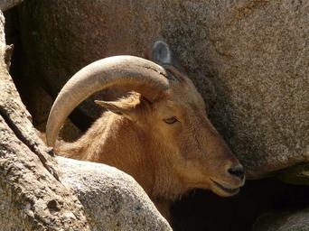 Keywords: mane springer aoudad sheep mammal goat animal creature fur horns stone rock