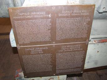| Keywords: Maneesi 120 41 A memorial plaque.JPG QF 4 7 /40 12 cm Mark IV gun in Maneesi Military Museum This gun was built in Kure Japan under license and later sold to Russian Empire Taken over by Finland and given the designation 120/41 A 120 mm 41 caliber model Armstrong This gun was used in the Järisevä coastal fort where it supported the Finnish defences at Mannerheim Line and was damaged during Winter War See also File Maneesi 120 41 A side 2 JPG right side view File Maneesi 120 41 A barrel JPG right side muzzle close-up view File Maneesi 120 41 A front JPG muzzle view File Maneesi 120 41 A side JPG left side breech view File Maneesi 120 41 A rear JPG breech end view File Maneesi 120 41 A information plaque JPG information plaque fi 120/41 A eli 120 mm n 41 kaliiperin rannikkotykki mallia Armstrong Sotamuseon Maneesissa Englantilainen QF 4 7 /40 12 cm Mark IV valmistettu Kuressa Japanissa lisenssillä ja myöhemmin myyty Venäjän keisarikuntaan Tykki oli talvisodassa Järisevän rannikkolinnakkeella jossa se tuki Mannerheim-linjan puolustajia ja vaurioitui taisteluissa own MKFI 2010-05-13 60 8 45 09 N 24 59 20 61 E region FI QF 4 7 inch Gun Mk I - IV Coastal artillery in Finland Manege Military Museum Taken with Canon PowerShot SX10 IS Plaques referencing 1939 Plaques referencing 1940 Files by User MKFI |
