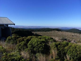 Keywords: Mangaehuehu Hut 4.jpg View down over the Manawatu-Wanganui region from the Mangaehuehu Hut 2013-03-27 Own Sarang Mangaehuehu Hut
