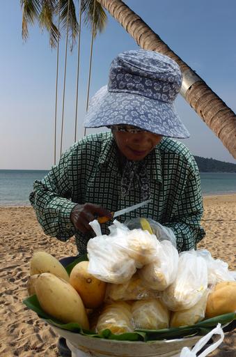 Keywords: mango woman asian girl shop assistant fruit saleswoman beach fruits fruit vitamins healthy thailand asia