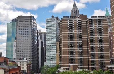 Keywords: manhattan brooklyn new york architecture downtown view skyscraper york city building skyline sky blue clouds town tourism construction