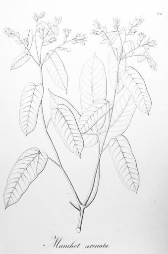Keywords: Manihot violacea arcuata Pohl33.png es hactenus ineditae Vol 1 1827 Johann Baptist Emanuel Pohl see http //www biolib de PD-old Botanical illustrations by Johann Baptist Emanuel Pohl Manihot divergens