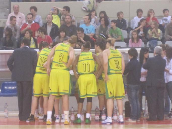 Keywords: Mann Filter Abril 2011.JPG es El equipo de Mann Filter haciendo una piña ante de disputar su partido de Play Off contra el Ros Casares en Zaragoza own Campeones 2008 Cc-zero CDB Zaragoza Rear views of people