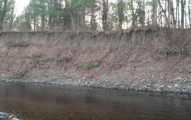| Keywords: Manna site cut bank series c.jpg en Raymondskill Creek just above its junction with the Delaware River in Delaware Water Gap National Recreation Area in Pike County Pennsylvania Third in a series of five photos of the south bank moving upstream showing erosion into the Manna archaeological site; the site is part of the Minisink Historic District which is listed in the National Register of Historic Places 2011-11-26 own Ammodramus cc-zero Uploaded with UploadWizard Pictures by Ammodramus Taken with Panasonic Lumix DMC-FZ20 Manna archaeological site |