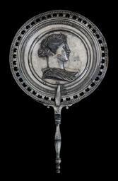 Keywords: MANNapoli 145524 silver mirror.jpg en Ancient roman mirror with a figurative emblem silver 1st c CE From the treasure of the House of Menander in Pompeii Italy fr Miroir romain en argent Ier siècle Fait partie du trésor de la Maison de Ménandre trouvé à Pompéi Italie institution Naples National Archaeological Museum inv 145524 2015-07-29 11 54 12 own Jebulon other versions cc-zero Tesoro dalla Casa del Menandro Napoli 145524 Ancient Roman mirrors in Italy Black background Uploaded with UploadWizard