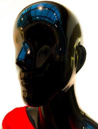 Keywords: mannequin model snowman black shine red reflection glass