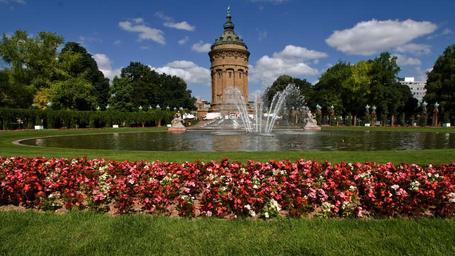 Keywords: mannheim water tower flowers fountain