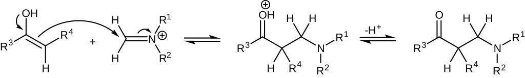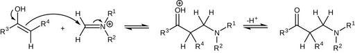Keywords: Mannichreactionmech3.svg Mannich reaction mechanism part 3 Own 2008-04-18 TommyCP This image is public domain Mannich reaction