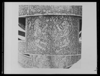 | Keywords: Manpansar, möjligen tillhörigt Johan III, 1500-talets mitt - Livrustkammaren - 62337.tif LSH artwork sv Driven stålplåt med heltäckande etsad dekor Insidan svärtad med tydliga slagmärken Bestående av elva U-formiga skenor ökande i längd bakåt Skenorna lagda omlott och sammanfogade i varandra med längsgående 25 mm breda band av gulvitt sämskat skinn fästade med en nit i var skena På var sida en urtagning rektangulär med rundad nedre kant och vid sidan om denna en dekorativ nit med kullrig gulmetallhätta Kanterna nertill lätt rundade och baktill fasade Första skenan med insvängda sidor i mitten 24 mm långt spärrstift och längs yttre kanten genomgående hål i rad Sista skenans yttre kant omvikt rundsmidd och repstavsfilad bredd ca 15 mm Etsad dekor blanka figurer mot mörk bakgrund På nedre delen fabliska djur och porträtt inom ovaler omgärdat av slingrande växtrankor På övre delen olika motiv som stående lejon ställda mot varandra och mytologiska scener allt omgärdat av slingrande rankor original caption mid other date century 16 brass - leather Färg gulvit material läder - steel Färg blankt svart material stål size mm 780 330 LRK Johan III av Sverige Hästen 1991 Tre Konungar på Åbo slott 1993 Björneborg - Johans stad Satakunta Museum Björneborg/Pori 2008 Trofast - hov och tass i kunglig tjänst 2010-2011 Livrustkammaren Trogna vänner - Kungliga hästar och hundar 2011-2012 Museiverket/Finlands nationalmuseum place of origin original filename LN_E02893 59502 inventory number LRK 22860 62337 CC0 Manpansar möjligen tillhörigt Johan III 1500-talets mitt - Livrustkammaren - 62337-negative tif <gallery caption Different images of same object > File Manpansar möjligen tillhörigt Johan III 1500-talets mitt - Livrustkammaren - 19537 tif File Manpansar möjligen tillhörigt Johan III 1500-talets mitt - Livrustkammaren - 79458 tif File Manpansar möjligen tillhörigt Johan III 1500-talets mitt - Livrustkammaren - 36657 tif File Manpansar möjligen tillhörigt Johan III 1500-talets mitt - Livrustkammaren - 70899 tif File Manpansar möjligen tillhörigt Johan III 1500-talets mitt - Livrustkammaren - 53776 tif File Manpansar möjligen tillhörigt Johan III 1500-talets mitt - Livrustkammaren - 45215 tif File Manpansar möjligen tillhörigt Johan III 1500-talets mitt - Livrustkammaren - 10973 tif File Manpansar möjligen tillhörigt Johan III 1500-talets mitt - Livrustkammaren - 35519 tif File Manpansar möjligen tillhörigt Johan III 1500-talets mitt - Livrustkammaren - 2413 tif File Manpansar möjligen tillhörigt Johan III 1500-talets mitt - Livrustkammaren - 28096 tif </gallery> <gallery caption Related objects > File Ländpansar till hästrustning troligen tillhörigt Johan III 1500-tal - Livrustkammaren - 79460 tif LRK 22862 File Ländpansar till hästrustning troligen tillhörigt Johan III 1500-tal - Livrustkammaren - 36659 tif LRK 22862 File Bogpansar till hästrusning troligen tillhörigt Johan III 1500-tal - Livrustkammaren - 35526 tif LRK 22861 File Ländpansar till hästrustning troligen tillhörigt Johan III 1500-tal - Livrustkammaren - 70895 tif LRK 22862 File Bogpansar till hästrusning troligen tillhörigt Johan III 1500-tal - Livrustkammaren - 44085 tif LRK 22861 File Bogpansar till hästrusning troligen tillhörigt Johan III 1500-tal - Livrustkammaren - 79454 tif LRK 22861 File Utställningsbild sadlar hästrustningar mm - Livrustkammaren - 77173 tif LRK 22861 File Ländpansar till hästrustning har troligen tillhört Johan III 1500-tal - Livrustkammaren - 10975 tif LRK 22862 File Ländpansar till hästrustning troligen tillhörigt Johan III 1500-tal - Livrustkammaren - 2415 tif LRK 22862 </gallery> Horse armours Media contributed by LSH 2016-12 |
