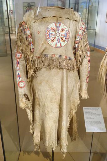 | Keywords: Man's shirt, Plains Cree, c. 1840, quillwork rosettes and fringes - Ethnological Museum, Berlin - DSC01086.JPG en Exhibit in the Ethnological Museum Berlin Germany Photography was permitted in the museum without restriction 2014-11-11 07 21 57 own Daderot other versions cc-zero Native American clothing in the Ethnological Museum Berlin Uploaded with UploadWizard | ||||