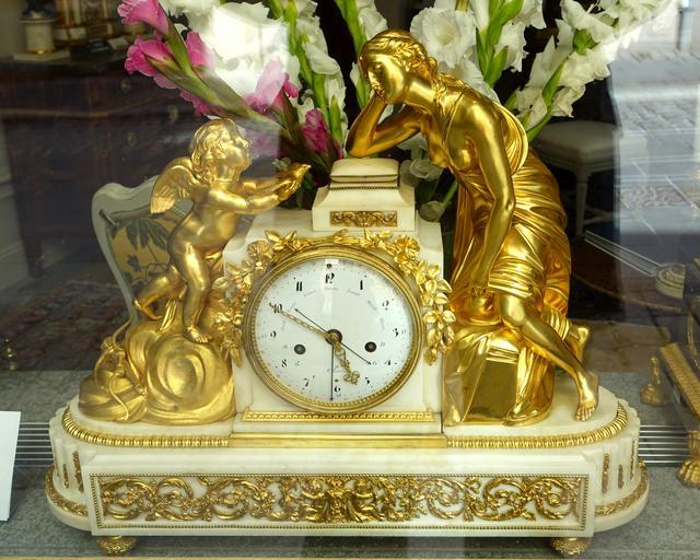 | Keywords: Mantel clock with Cupid offering dove to a languishing woman, 7 day movement, dial marked Paris - Stockholm, Sweden - DSC00739.JPG en Mantel clock with Cupid offering dove to a languishing woman 7 day movement dial marked Paris - Stockholm Sweden This work is in the public domain because the artists died more than 100 years ago Displayed in an antique store's window 2014-09-16 own Daderot other versions PD-100 cc-zero Uploaded with UploadWizard Clocks in Stockholm 18th-century desk clocks |