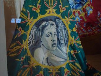 Keywords: Manto la Peste.JPG Manto de uno de los cuatro jinetes del apocalipsis que desfilan en el cortejo blanco la peste Semana Santa de Lorca Own 2008-03-20 Awuachumele Holy Week in Lorca