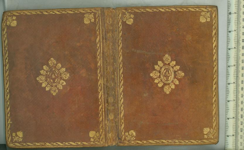 Keywords: Manual de economia causa - Upper and lower cover and spine (RB23a22654).jpg Style Centre and cornerpiece made of small tools Floral; Caption Upper and lower cover and spine; Colour Brown; Edge Marbled exhibition history Decorative Technique Tooled in gold; Cover Material Leather unspecified Free endleaves lined with pink paste paper Smooth spine tooled in gold object history Text 1787; Zaragoza; Unspecified object type Cc-zero place of creation Binding Spain place of discovery Unspecified British Library image http //www bl uk/catalogues/bookbindings/LargeImage aspx RecordId 020-000018592 ImageId ImageId 57189 Copyright BL Manual de economia causa Uploaded with GWToolset Manual de economia causa - Upper and lower cover and spine RB23a22654 http //www webarchive org uk/bldatasets/bindings/rb23a22654 jpg Bookbinding 18th-century bookbinding British Library Bookbindings |