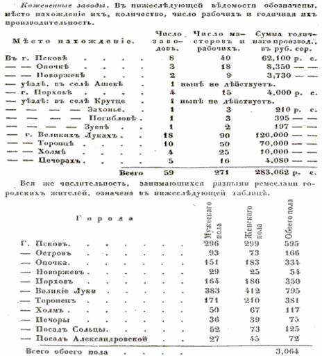 Keywords: Manufactory Velikiye Luki 1852.png ru К се едине XIX в Великие Луки азвивался как емесленный и кожевенный цент С авнительные таблицы по го одам Псковской губе нии на 1852 год 1 Численность емесленников; 2 Число кожевенных заводов Военно-статистическое обоз ение Российской импе ии Псковская губе ния Т III Ч 2 СПб 1852 С 311 313 Депа тамент Гене ального Штаба 1852 PD-RusEmpire History of Velikiye Luki PD-old |