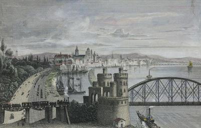| Keywords: Manz And Part Of Port From The South.jpg The city of Mainz Germany sometime in the late 19th century Visible is the Südbruecke southern railway bridge over the Rhine and parts of the city's port looking north down the river Mainz von Süden gesehen; spätes 19 Jahrhundert Zu sehen ist die Südbrücke südliche Eisenbahnbrücke der Winterhafen und die Altstadt Postcard image Internet date Late 19th century based on railway engine and ship forms as well as style of art later postcards used photography and the fact that the Winterhafen winter port shown was constructed in 1865 but the Theodor-Heuss-Bridge from 1885 is still missing author Postcard picture from the late 19th or early 20th century Copyright expired - PD-old other versions Unknown This version border-cropped and enlarged PD-old Port of Mainz Postcards of Mainz Unidentified steam locomotives of Germany Mainz in the 19th century Südbrücke Mainz Iron truss arch bridges in Germany Bridge towers Towers in Mainz |