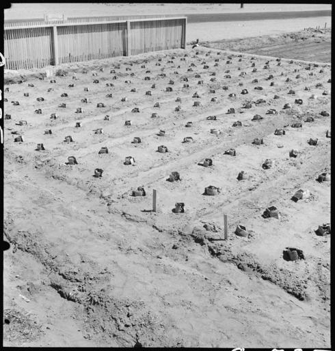 | Keywords: Manzanar Relocation Center, Manzanar, California. A view of a section in the growing bed for guayul . . . - NARA - 538029.jpg Scope and content The full caption for this photograph reads Manzanar Relocation Center Manzanar California A view of a section in the growing bed for guayule plants The plot is 30 x 50 sq feet and these plants have been in the ground for ten days General notes 538029 Local identifier 210-G-C735 Department of the Interior War Relocation Authority 02/16/1944 - 06/30/1946 NARA-Author Lange Dorothea 1895-1965 Photographer 1372774 <br /> Still Picture Records Section Special Media Archives Services Division NWCS-S National Archives at College Park 8601 Adelphi Road College Park MD 20740-6001 1942-06-28 Record group Record Group 210 Records of the War Relocation Authority 1941 - 1989 Record group ARC 537 Central Photographic File of the War Relocation Authority compiled 1942 - 1945 Series ARC 536000 File unit File unit ARC Variant control numbers NAIL Control Number NWDNS-210-G-C735 Other versions <gallery> File Manzanar_Relocation_Center _Manzanar _California _A_view_of_a_section_in_the_growing_bed_for_guayul_ _ _ _-_NARA_-_538029 tif tif File Manzanar_Relocation_Center _Manzanar _California _A_view_of_a_section_in_the_growing_bed_for_guayul_ _ _ _-_NARA_-_538029 jpg jpg </gallery> NARA-cooperation PD-USGov Photographs by Dorothea Lange of Manzanar War Relocation Center Agriculture in California Manzanar Fields in California Manzanar 1942 in California NARA images of Inyo County California Black and white photographs of California |