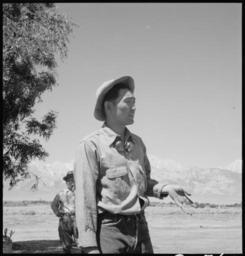 | Keywords: Manzanar Relocation Center, Manzanar, California. Johnny Fukazawa, foreman of fields Numbers 3, 4, . . . - NARA - 538055.jpg Scope and content The full caption for this photograph reads Manzanar Relocation Center Manzanar California Johnny Fukazawa foreman of fields Numbers 3 4 5 and 6 and heading a 20-man crew on the farm project says We have problems to combat here which are new to us We don't know these hot dry winds There were no rabbits to plague us down below Everything is so different and we have to do much experimenting General notes 538055 Local identifier 210-G-C761 Department of the Interior War Relocation Authority 02/16/1944 - 06/30/1946 NARA-Author Lange Dorothea 1895-1965 Photographer 1372774 <br /> Still Picture Records Section Special Media Archives Services Division NWCS-S National Archives at College Park 8601 Adelphi Road College Park MD 20740-6001 1942-06-30 Record group Record Group 210 Records of the War Relocation Authority 1941 - 1989 Record group ARC 537 Central Photographic File of the War Relocation Authority compiled 1942 - 1945 Series ARC 536000 File unit File unit ARC Variant control numbers NAIL Control Number NWDNS-210-G-C761 Other versions <gallery> File Manzanar_Relocation_Center _Manzanar _California _Johnny_Fukazawa _foreman_of_fields_Numbers_3 _4 _ _ _ _-_NARA_-_538055 tif tif File Manzanar_Relocation_Center _Manzanar _California _Johnny_Fukazawa _foreman_of_fields_Numbers_3 _4 _ _ _ _-_NARA_-_538055 jpg jpg </gallery> NARA-cooperation PD-USGov Photographs by Dorothea Lange of Manzanar War Relocation Center |