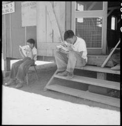 | Keywords: Manzanar Relocation Center, Manzanar, California. Evacuee boys of Japanese ancestry at entrance of . . . - NARA - 538075.jpg Scope and content The full caption for this photograph reads Manzanar Relocation Center Manzanar California Evacuee boys of Japanese ancestry at entrance of Relocation Hall reading Funnies General notes 538075 Local identifier 210-G-C782 Department of the Interior War Relocation Authority 02/16/1944 - 06/30/1946 NARA-Author Lange Dorothea 1895-1965 Photographer 1372774 <br /> Still Picture Records Section Special Media Archives Services Division NWCS-S National Archives at College Park 8601 Adelphi Road College Park MD 20740-6001 1942-07-01 Record group Record Group 210 Records of the War Relocation Authority 1941 - 1989 Record group ARC 537 Central Photographic File of the War Relocation Authority compiled 1942 - 1945 Series ARC 536000 File unit File unit ARC Variant control numbers NAIL Control Number NWDNS-210-G-C782 Other versions <gallery> File Manzanar_Relocation_Center _Manzanar _California _Evacuee_boys_of_Japanese_ancestry_at_entrance_of_ _ _ _-_NARA_-_538075 tif tif File Manzanar_Relocation_Center _Manzanar _California _Evacuee_boys_of_Japanese_ancestry_at_entrance_of_ _ _ _-_NARA_-_538075 jpg jpg </gallery> NARA-cooperation PD-USGov Photographs by Dorothea Lange of Manzanar War Relocation Center |