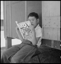 | Keywords: Manzanar Relocation Center, Manzanar, California. Evacuee boy at this War Relocation Authority cent . . . - NARA - 538076.jpg Scope and content The full caption for this photograph reads Manzanar Relocation Center Manzanar California Evacuee boy at this War Relocation Authority center reading the Funnies General notes 538076 Local identifier 210-G-C783 Department of the Interior War Relocation Authority 02/16/1944 - 06/30/1946 NARA-Author Lange Dorothea 1895-1965 Photographer 1372774 <br /> Still Picture Records Section Special Media Archives Services Division NWCS-S National Archives at College Park 8601 Adelphi Road College Park MD 20740-6001 1942-07-01 Record group Record Group 210 Records of the War Relocation Authority 1941 - 1989 Record group ARC 537 Central Photographic File of the War Relocation Authority compiled 1942 - 1945 Series ARC 536000 File unit File unit ARC Variant control numbers NAIL Control Number NWDNS-210-G-C783 Other versions <gallery> File Manzanar_Relocation_Center _Manzanar _California _Evacuee_boy_at_this_War_Relocation_Authority_cent_ _ _ _-_NARA_-_538076 tif tif File Manzanar_Relocation_Center _Manzanar _California _Evacuee_boy_at_this_War_Relocation_Authority_cent_ _ _ _-_NARA_-_538076 jpg jpg </gallery> NARA-cooperation PD-USGov Photographs by Dorothea Lange of Manzanar War Relocation Center |