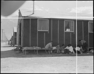 | Keywords: Manzanar Relocation Center, Manzanar, California. Evacuees at this War Relocation Authority center . . . - NARA - 538160.jpg Scope and content The full caption for this photograph reads Manzanar Relocation Center Manzanar California Evacuees at this War Relocation Authority center relaxing in the shade of their barrack apartment General notes 538160 Local identifier 210-G-C875 Department of the Interior War Relocation Authority 02/16/1944 - 06/30/1946 NARA-Author Lange Dorothea 1895-1965 Photographer 1372774 <br /> Still Picture Records Section Special Media Archives Services Division NWCS-S National Archives at College Park 8601 Adelphi Road College Park MD 20740-6001 1942-07-03 Record group Record Group 210 Records of the War Relocation Authority 1941 - 1989 Record group ARC 537 Central Photographic File of the War Relocation Authority compiled 1942 - 1945 Series ARC 536000 File unit File unit ARC Variant control numbers NAIL Control Number NWDNS-210-G-C875 Other versions <gallery> File Manzanar_Relocation_Center _Manzanar _California _Evacuees_at_this_War_Relocation_Authority_center_ _ _ _-_NARA_-_538160 tif tif File Manzanar_Relocation_Center _Manzanar _California _Evacuees_at_this_War_Relocation_Authority_center_ _ _ _-_NARA_-_538160 jpg jpg </gallery> NARA-cooperation PD-USGov Photographs by Dorothea Lange of Manzanar War Relocation Center Wooden houses in Inyo County California Manzanar Houses in California built in 1942 Manzanar NARA images of Inyo County California Black and white photographs of residential buildings Manzanar Black and white photographs of California |